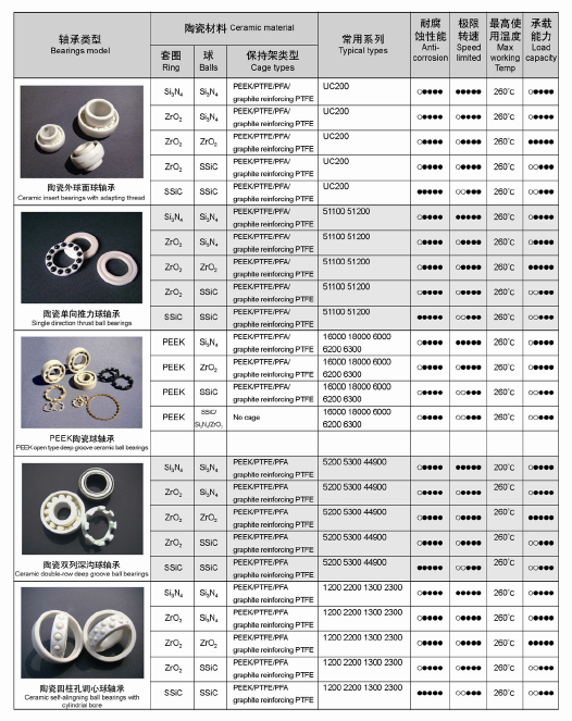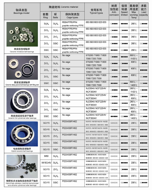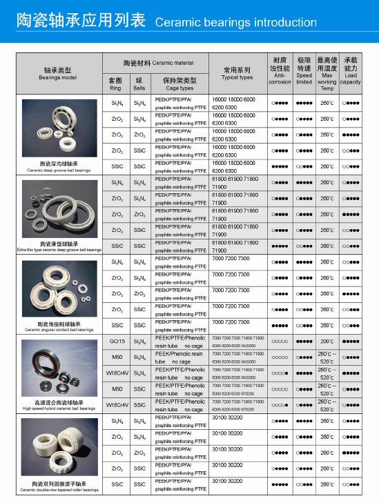 陶瓷滾動軸承的應用列表